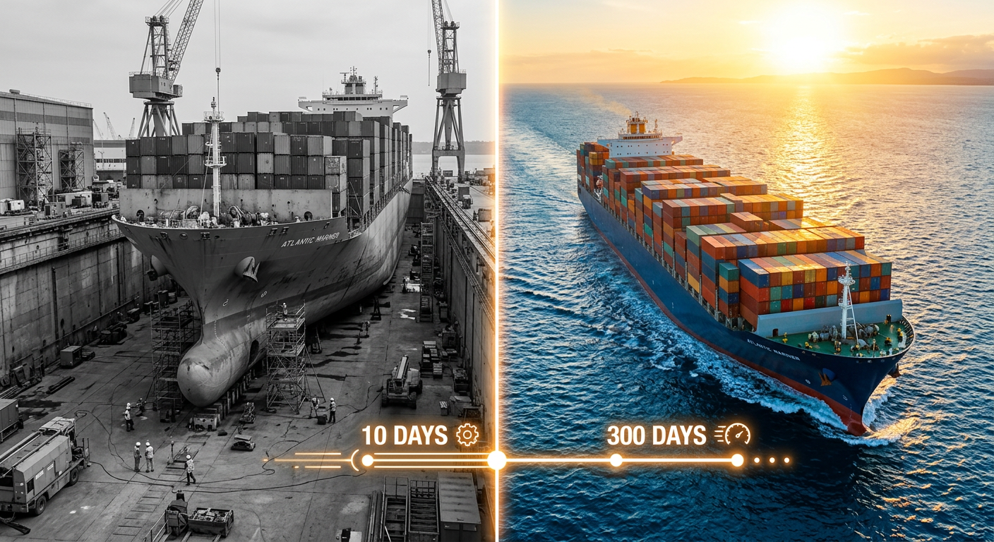 Dry-docking is a financial black hole. Between tugs, pilotage, dock fees, blasting, and repainting, costs quickly run into the hundreds of thousands, if not millions. Worse yet is the opportunity cost of off-hire days, where lost revenue can top $100,000 per day. Extending the time between these events is one of the most effective strategies for massive OPEX reduction.